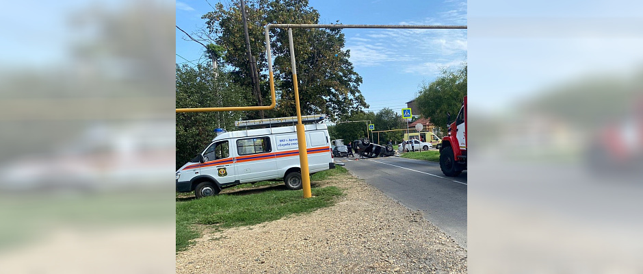 Пострадали 4 человека: иномарка перевернулась во время ДТП на перекрёстке Комсомольской и Горького в Армавире