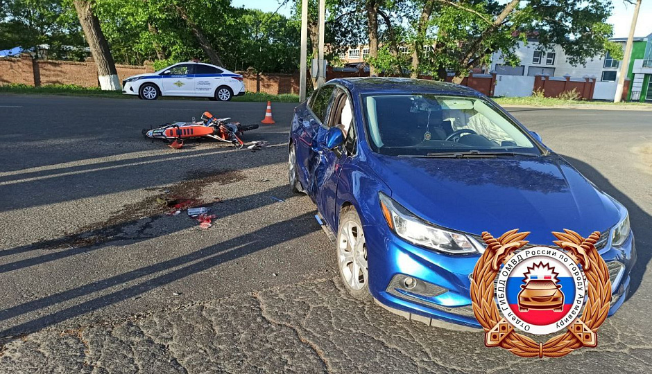 Мотоциклист получил травмы при столкновении с легковушкой в Армавире