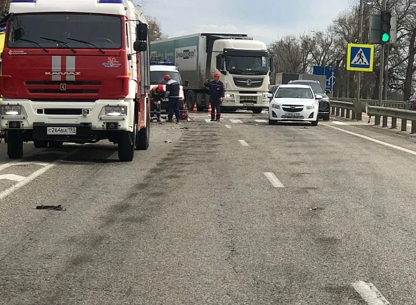 Два грузовых и 4 легковых автомобиля столкнулись на трассе под Армавиром