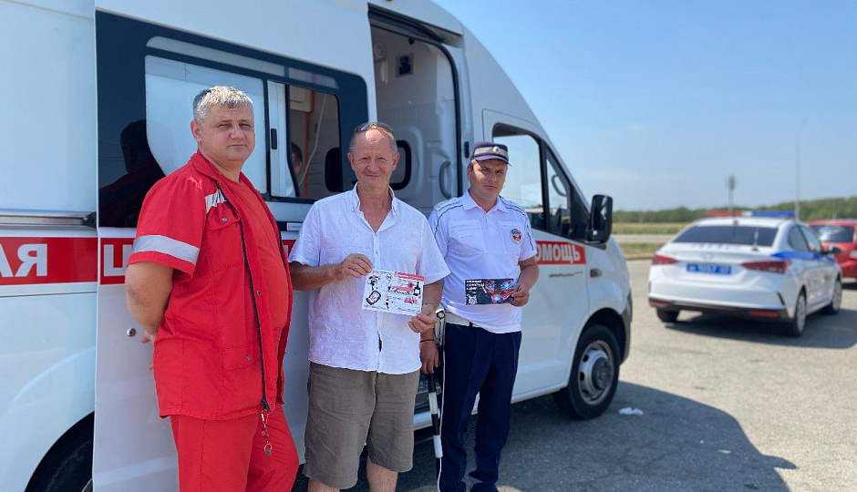 Армавир, 23 июля. Сотрудники Госавтоинспекции Армавира совместно с врачами скорой медицинской помощи 22 июля провели профилактическую акцию «Безопасная дорога в отпуск».