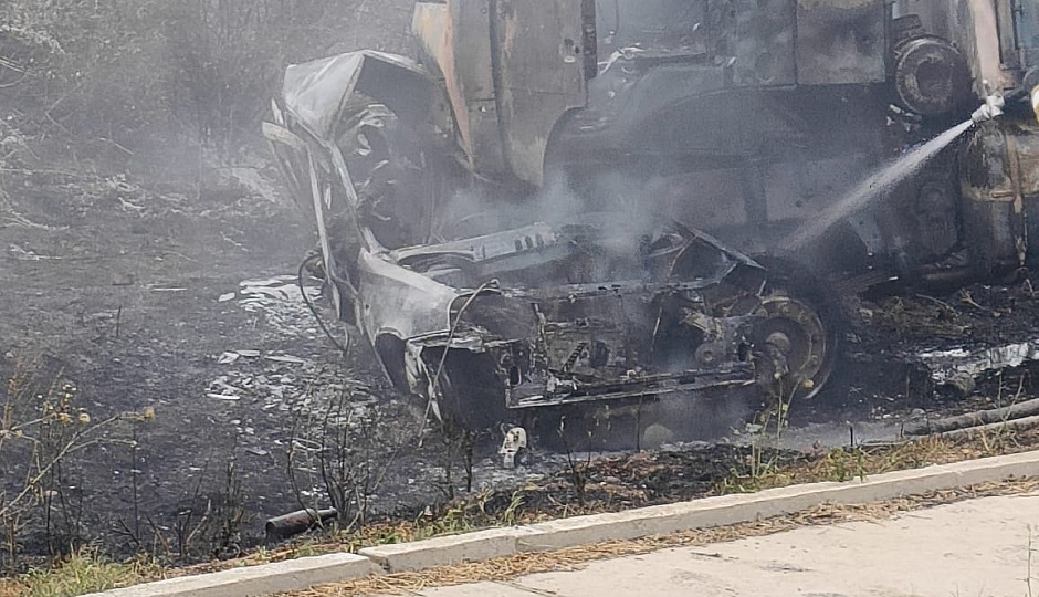 После ДТП произошло возгорание транспортных средств. В результате аварии водитель легковушки погиб. Водитель "Камаза" жив.