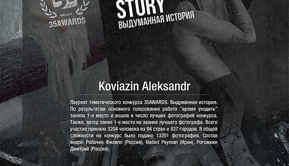 Высшую оценку конкурсного жюри получили работы известного армавирского фотохудожника Александра Ковязина. По результатам основного голосования его работа «Время уходить» заняла 1 место и вошла в число лучших фотографий конкурса. Кроме того, Александр занял 1 место на звание лучшего фотографа.