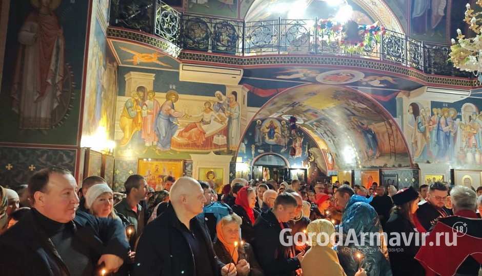 Армавир, 13 апреля. Сотни армавирцев собрались вечером 11 апреля в храме Рождества Христова. Также богослужение посетили глава Армавира Андрей Харченко и председатель Армавирской городской Думы Александр Поляков.