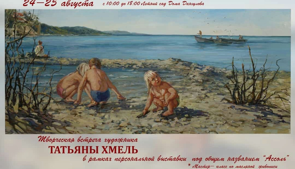 24 и 25 августа в саду Дома Дангулова состоится творческая встреча художника Татьяны Хмель в рамках персональной выставки одной картины «Ассоль», где можно будет увидеть полотно с одноименным названием и морские этюды к этой картине.