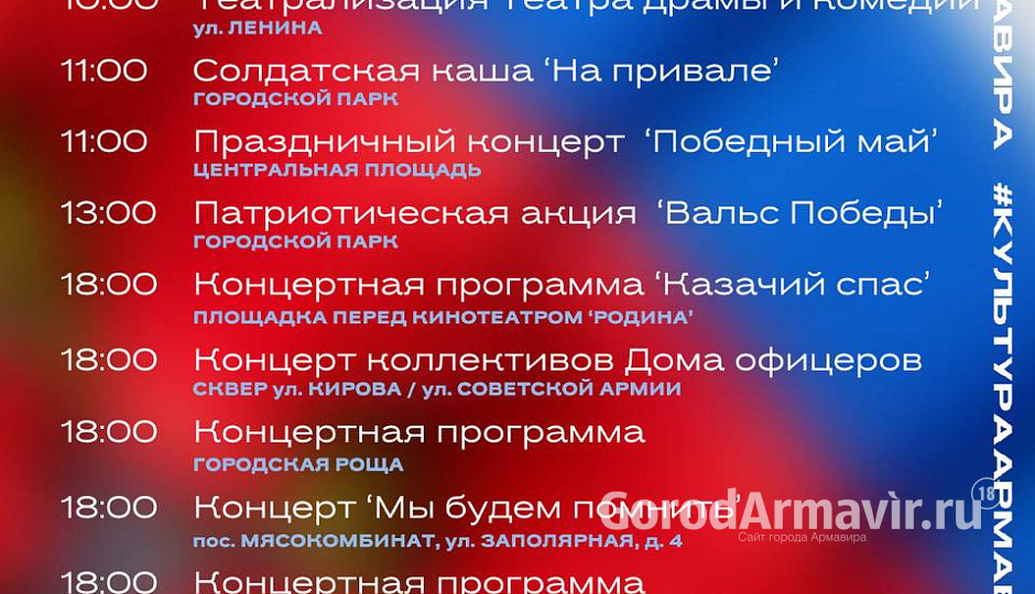 Опубликована программа праздничных мероприятий с 28 апреля по 1 мая в Армавире