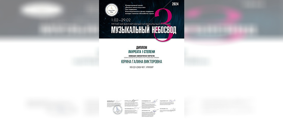 - Галина Викторовна стала победительницей Третьего международного музыкального конкурса «Музыкальный небосвод», - рассказали порталу gorodarmavir.ru в отделе культуры администрации муниципального образования город Армавир.