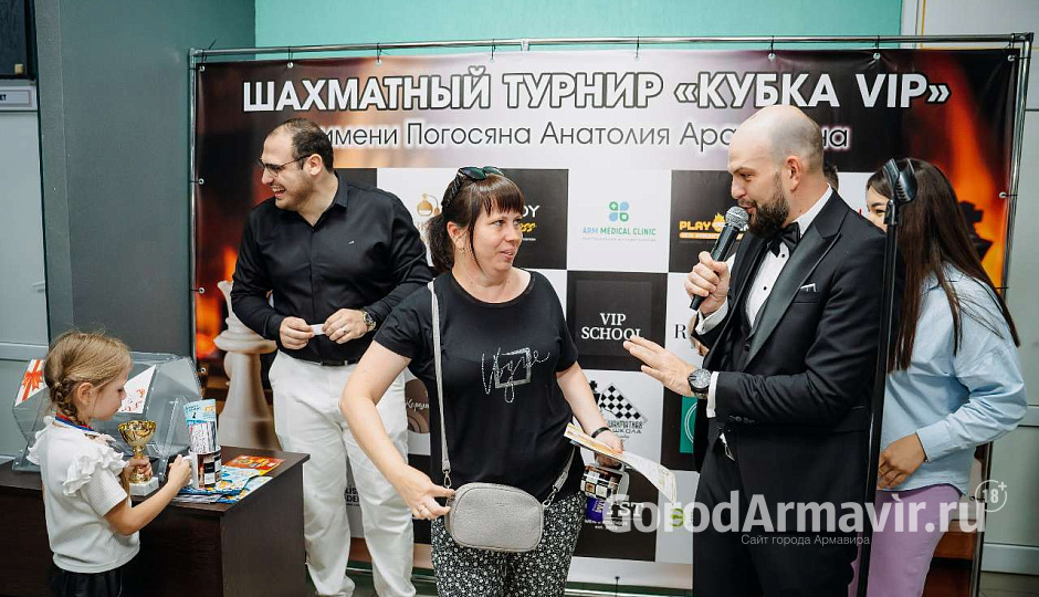 В Армавире прошел необычный шахматный турнир. Он состоялся по адресу улица Халтурина, 70, в офисе агентства недвижимости VIP. Оно и является организатором первого в городе детского шахматного турнира «Кубка VIP», посвященного имени Анатолия Арамовича Погосяна. Это был настоящий праздник, иначе этот турнир назвать нельзя. Красочное оформление, великолепные ведущие, фотографы, видеографы и атмосфера сделали эти соревнования необычайно радостными как для маленьких шахматистов, так и для их родителей. Это и было главной задумкой организаторов.