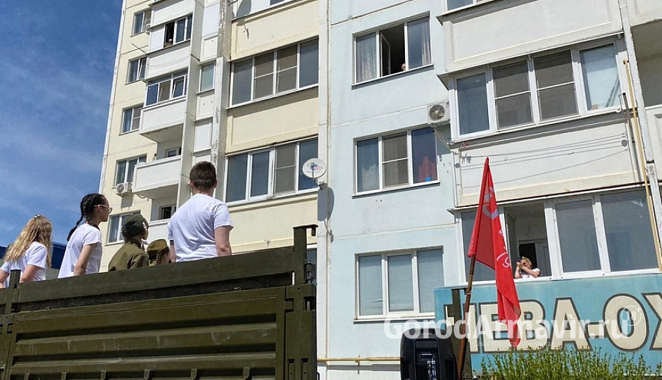 Под окнами жителей различных районов развернулся настоящий калейдоскоп творческих коллективов. Артисты пели известные каждому с детства песни военных лет: "День победы", "Катюша", "Смуглянка".