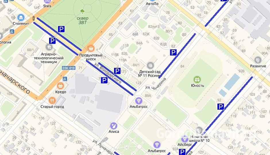 Парковка транспорта в субботу будет организована по обеим сторонам улицы Володарского от Ефремова (четная сторона) до Чичерина (плавательный бассейн), на улице Луначарского (нечетная сторона) от Чичерина до Свердлова, на четной стороне ул.Свердлова от ледового катка «Айсберг» до Тургенева, на четной стороне улицы Чичерина от улицы Володарского (плавательный бассейн) до Энгельса.