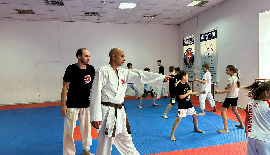 Армавир, 14 августа. В Армавире сотрудник Госавтоинспекции старший лейтенант полиции Денис Горьев встретился с воспитанниками спортивного клуба шотокан каратэ-до «Тэккэн». В рамках акции «Зарядка со стражем порядка» полицейский показал детям основные упражнения, которые необходимо выполнять ежедневно.
