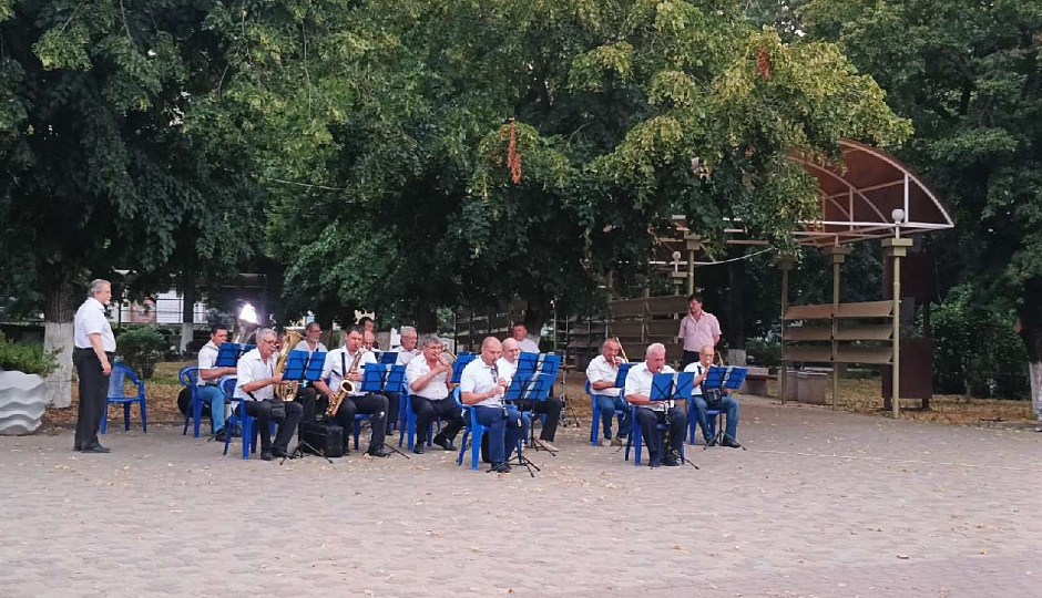 В Армавире у фонтана «Победы» духовой оркестр ГДК представил свою программу «В городском саду играет»