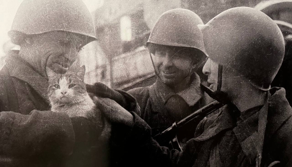 Грандиозное по значимости подписание акта о капитуляции Германии или трогательный эпизод со сталинградскими солдатами, держащими на огрубевших мужских руках выжившую после ожесточенных боев кошку, слезы счастья на глазах первых вернувшихся победителей на Белорусском вокзале и последний воинственный призыв «Комбата» к битве за судьбу родного Отечества: нелегкий труд фотохудожников того времени нашел свое воплощение в новой фотовыставке.