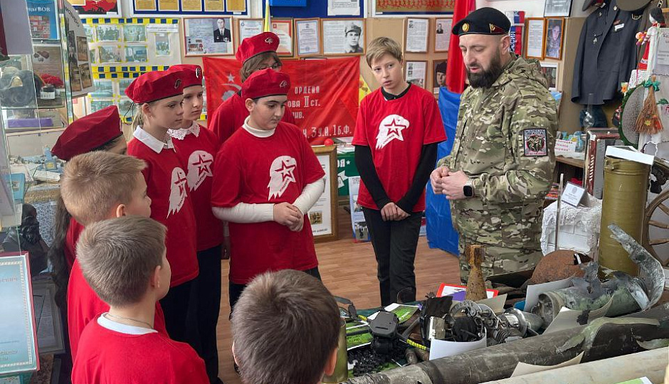 Армавир, 22 февраля. В преддверии Дня Защитника Отечества в юнармейском классе МБОУ СОШ №23 прошла встреча с участником специальной военной операции Русланом Тепловым.