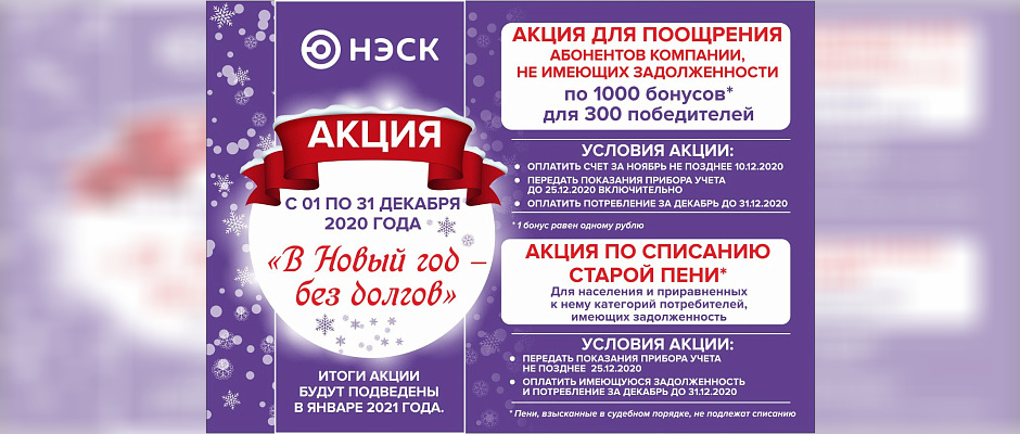 Акция для поощрения абонентов компании, не имеющих задолженности по 1000 бонусов* для 300 победителей.