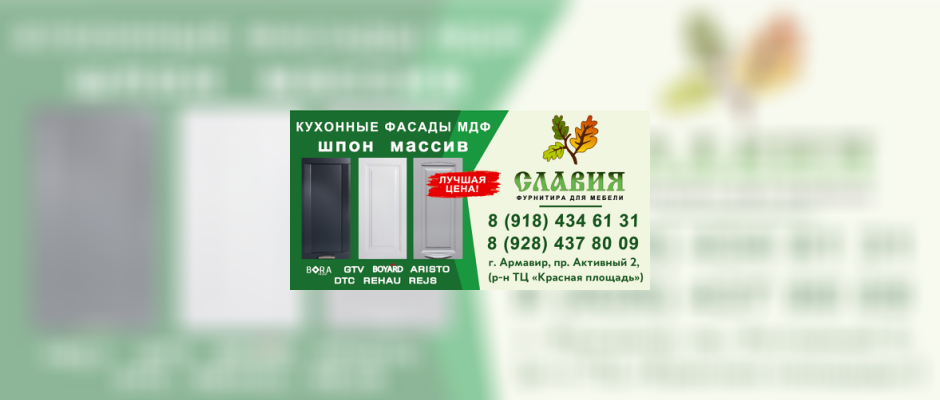 Фасады МДФ и мебельную фурнитуру по конкурентным ценам предлагает фирма «Славия» в Армавире