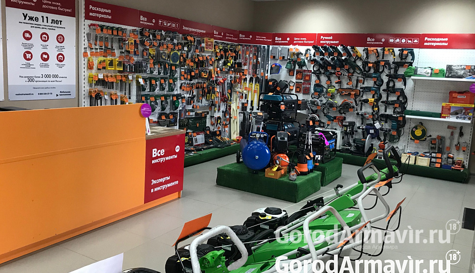 В Армавире открылся крупнейший интернет-магазин электроинструментов и садовой техники «Все инструменты.ру». Эта федеральная сеть магазинов имеет филиалы уже в 136 городах России. Ассортимент товаров насчитывает более 50 тысяч единиц. Компания «Все инструменты.ру» уже более 13 лет учитывает новые тенденции на рынке инструмента и предлагает покупателям лучшие и зарекомендовавшие себя годами бренды. Здесь вы найдете такие марки, как Bosch, Makita, Metabo, Dewalt.