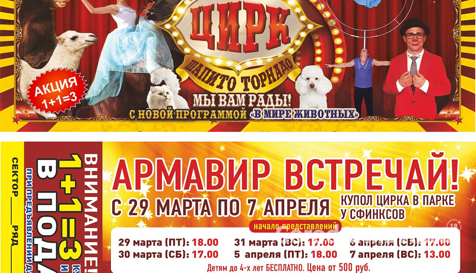 Армавир, 20 марта. Цирк – это не просто одно из любимых развлечений детей и взрослых, но и настоящий праздник! Армавирцы смогут убедиться в этом с 29 марта по 7 апреля на представлениях цирка-шапито из Северной столицы «Торнадо». Артисты приезжают в наш город уже второй раз, но теперь с новой программой. Она обновлена на 80%.