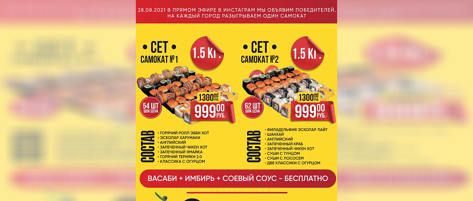 Закажи на самовывоз один из сетов уже сейчас, копи билеты, выиграй самокат