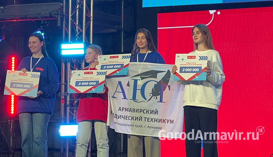 - Среди 20 колледжей и техникумов, подготовивших самых активных участников, –Армавирский юридический техникум. Учебное заведение получит 2 миллиона рублей на развитие образовательной среды, - сообщила вице-губернатор Анна Минькова в своем Telegram-канале.