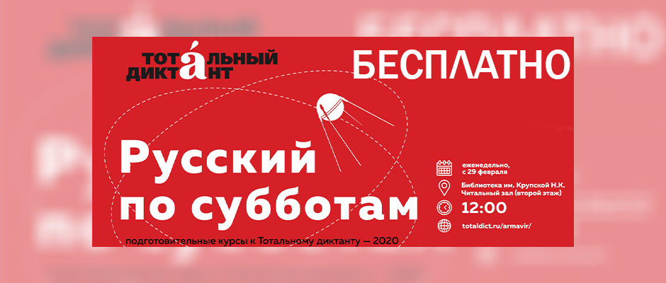 Армавир, 28 февраля. В Армавире для желающих написать «Тотальный диктант» проведут бесплатные занятия. Каждую субботу, начиная с 29 февраля, в читальном зале библиотеки им. Крупской будут проводиться спецуроки.