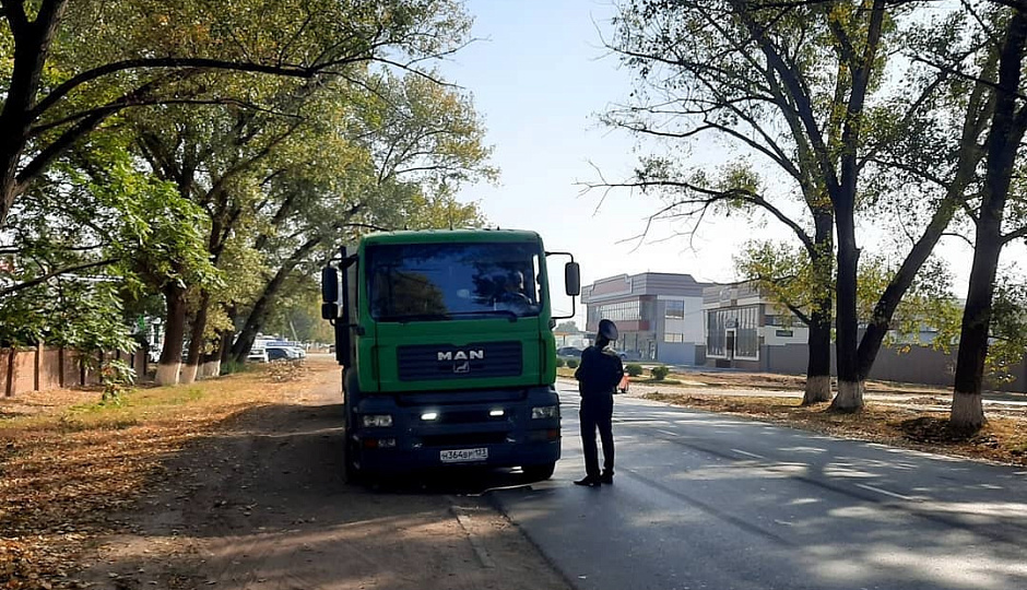 Автоинспекторы во время рейдов проверяют грузовые транспортные средства в Армавире