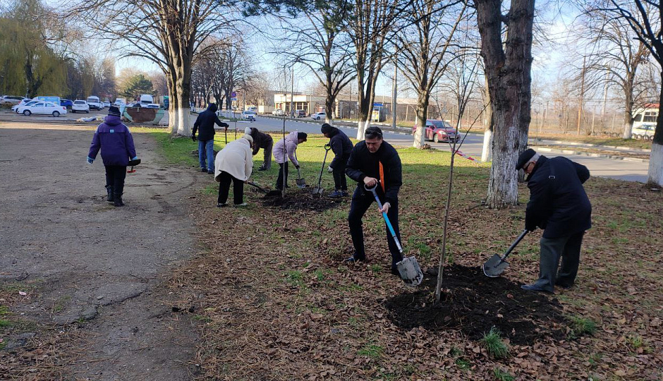 Армавир, 5 декабря. Депутат Армавирской городской Думы Александр Резинков вместе с жителями и активом ТОС №10 принял участие в акции по высадки молодых деревьев в микрорайоне «Черемушки».