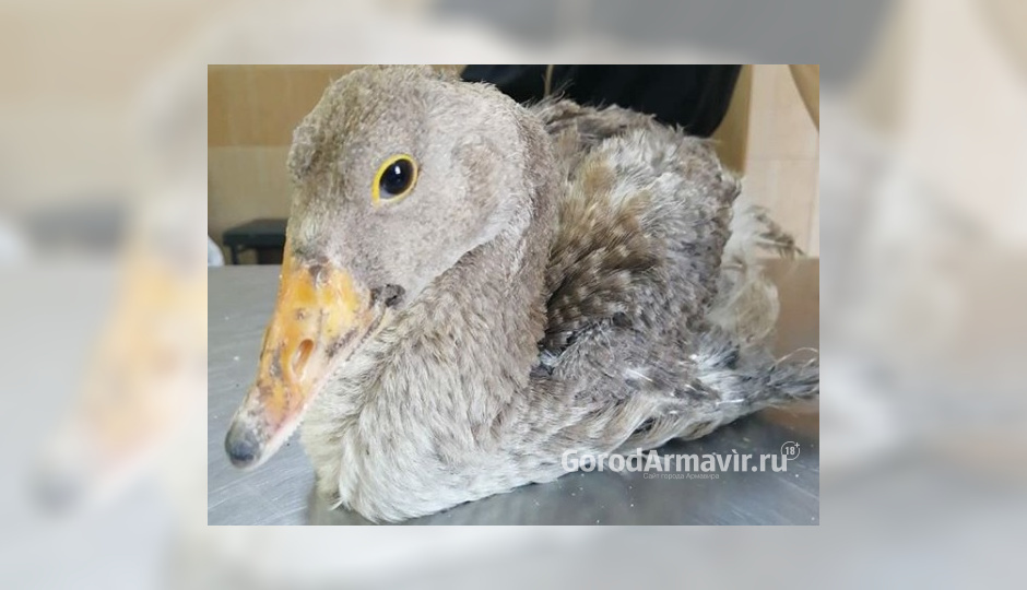 Для спасения жизни лебедя жители Армавира надели на его лапы носки