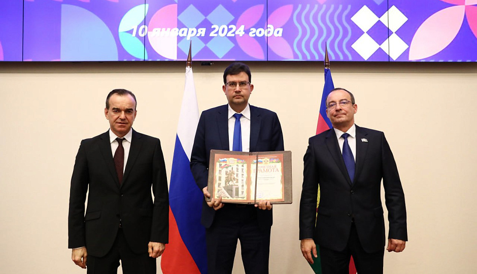 Заслуженные награды представители мэрии города получили из рук главы региона Вениамина Кондратьева и председателя Законодательного Собрания Краснодарского края Юрия Бурлачко.