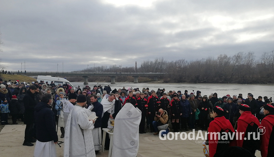 Крещенские купания в Армавире охватили более 500 человек. В этом году священнослужители Армавирской и Лабинской епархии освятили воды реки Кубань, на берегу которой оборудовали место для омовения. Службу провел благочинный церквей армавирского округа отец Иоанн Гелеван.