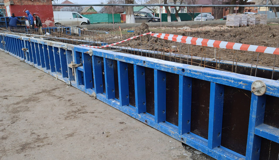 На стройплощадке спортзала школы № 15 строители закончили фундамент