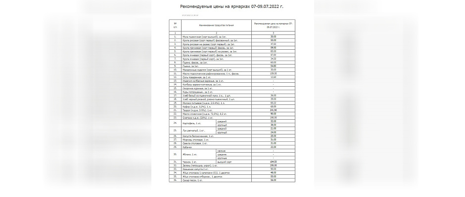 Каждый четверг специалисты готовят рекомендуемый прайс-лист и публикуют его на официальном сайте администрации города. Мониторинг установленных цен проводится на всех ярмарках, в том числе в отдаленных районах.