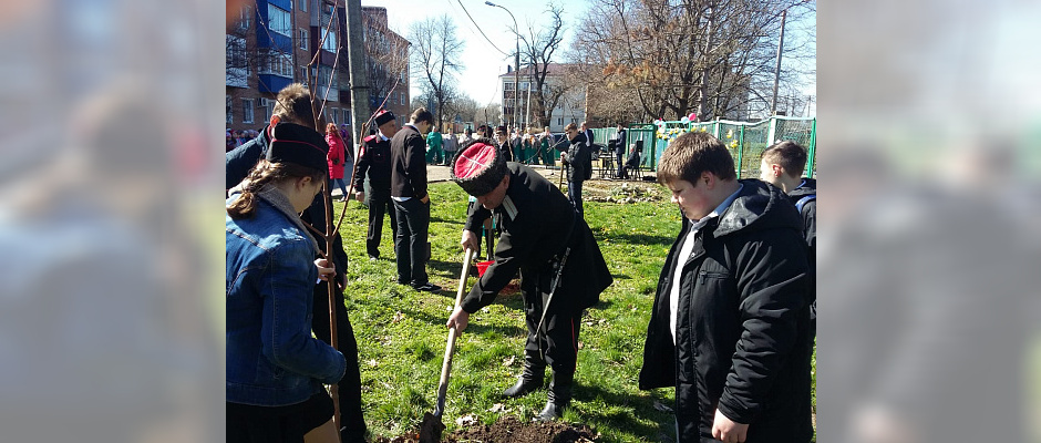 Рябиновую аллею возле школы № 6 посадили казачата Новокубанского района