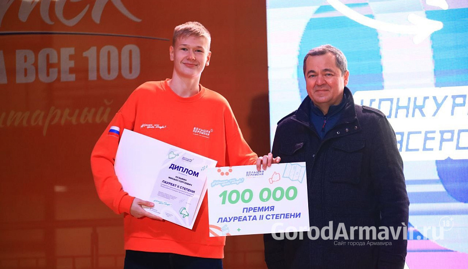 - Ребята получили сертификаты на получение премии в 1 млн руб, а также 100 и 200 тысяч. Также армавирцам начислят дополнительные баллы в портфолио достижении при поступлении в вузы. Призы также получат педагоги-наставники, - рассказали корреспонденту портала gorodarmavir.ru в пресс-службе Местного отделения «Движение Первых» Армавир.