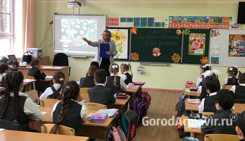 По сложившейся традиции, утро понедельника в девятой школе началось с поднятия флагов — России, Кубани и Армавира. Дети с гордостью прослушали гимны страны и Краснодарского края и отправились на урок «Разговоры о важном». В преддверии Дня учителя на нем шла речь о профессии педагога. В том числе школьникам напомнили о важности новой должности советника директора по воспитанию. Она появилась в школах Кубани в прошлом году в рамках пилотного проекта и оказалась очень эффективной.