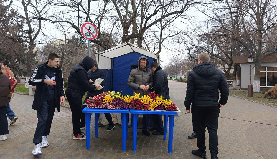 Центр национальных культур Армавира 8 марта дарил всем жительницам города цветы