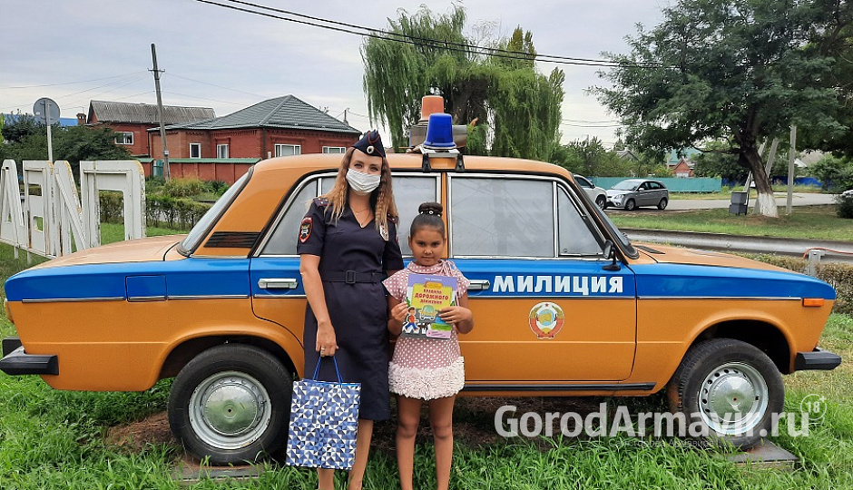 Заместитель начальника ОГИДД Отдела МВД России по городу Армавиру подполковник полиции Андрей Катасонов 21 августа пригласил Эвелину в подразделение Госавтоинспекции для того, чтобы поздравить ее с началом нового учебного года.