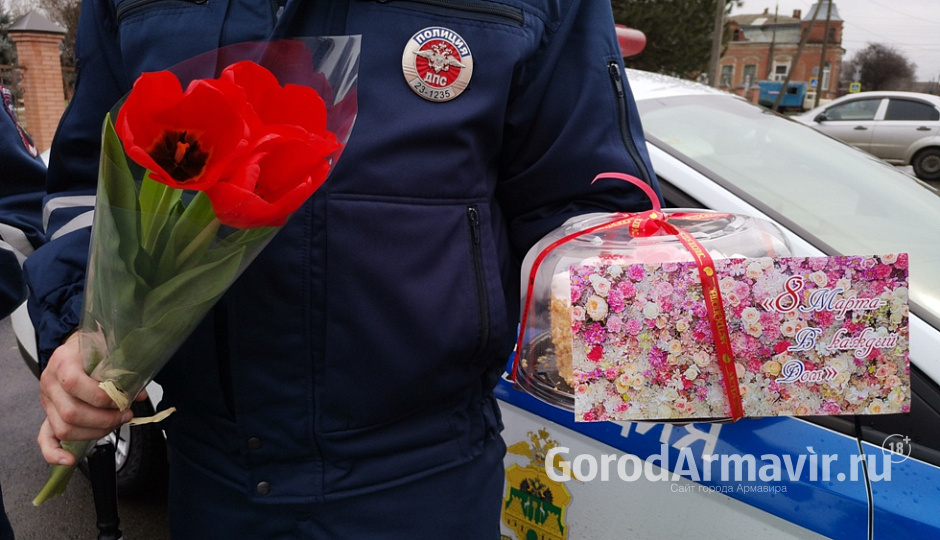 В Армавире госавтоинспекторы поздравили автоледи с 8 марта