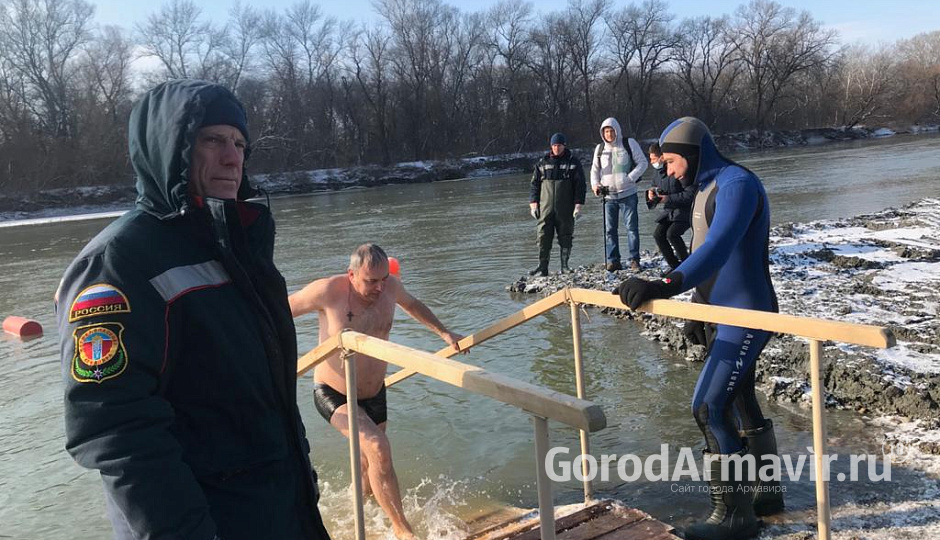 Армавир, 19 января. В Армавире 19 января верующие смогли окунуться в прорубь. В этом году как и в прошлом, место для омовения оборудовали в Старой Станице на правом берегу Кубани. Священнослужители Армавирской и Лабинской епархии провели службу и освятили воды реки. 19 января православные христиане празднуют Крещение Господня. В этот день православная церковь вспоминает, как Иоанн Предтеча крестил Иисуса Христа в реке Иордан.