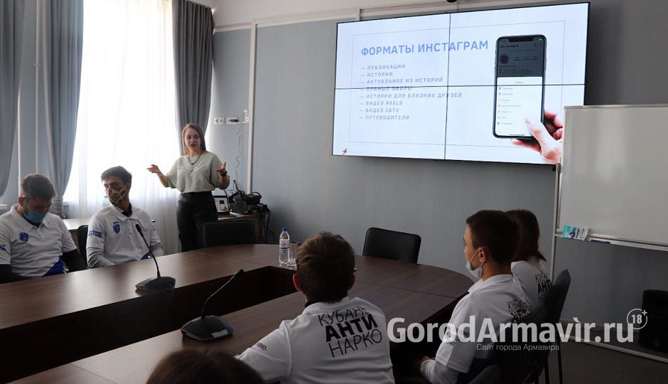 С молодежными активистами встретились специалисты Министерства образования, науки и молодежной политики Краснодарского края в сфере профилактики наркомании, алкоголизма и табакокурения. Большая обучающая программа проходила в течение всего дня. Специалисты органов молодёжной политики, представители общественных организаций и молодёжный движений работали по трём секциям: "СММ", "Психология", "Медиаторство".