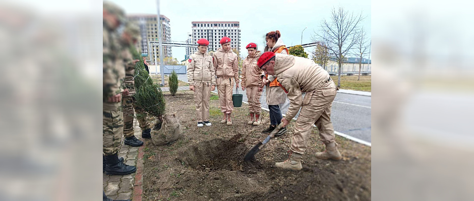 В посадке елей приняли участие бойцы отдельного отряда специального назначения «Вятич», почетные гости, представители администрации и юнармейцы. Хвойные деревья части подарил Армавирский Совхоз декоративных культур.