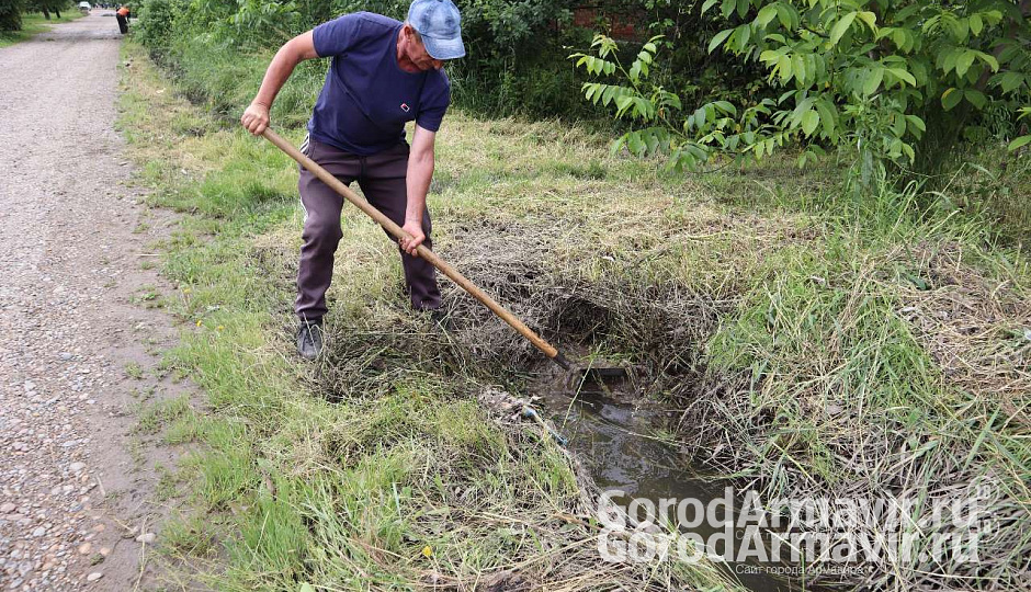 В Армавире на улицах Кирова, Ленина и Халтурина прочистили и углубили ливневки