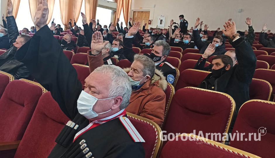 В Армавире казаки выбрали нового атамана. Собрание прошло в актовом зале администрации города. Провел его атаман Армавирского районного казачьего общества Сергей Фролов. Два срока подряд городское общество возглавлял Владимир Чикильдин. Минувший год был непростым. Казаки работали в условиях карантина, тем не менее получилось вести активное участие в охране общественного порядка, совместно с сотрудниками полиции проводились антитеррористические мероприятия, был реализован ряд образовательных программ. На собрании прозвучал отчет о проделанной работе.