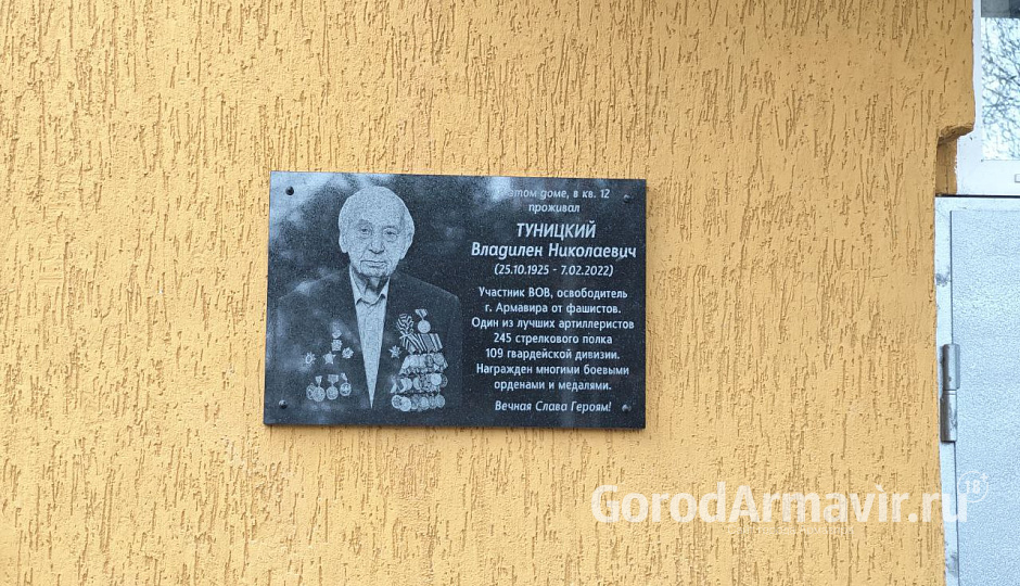 Армавир,23 января. В день освобождения Армавира от немецко-фашистских захватчиков в городе открыли мемориальную доску ветерану Великой Отечественной войны Владилену Туницкому. У многоквартирного дома на улице Дзержинского, 35 собрались представители общественности, ветераны, юнармейцы, почетные гости.
