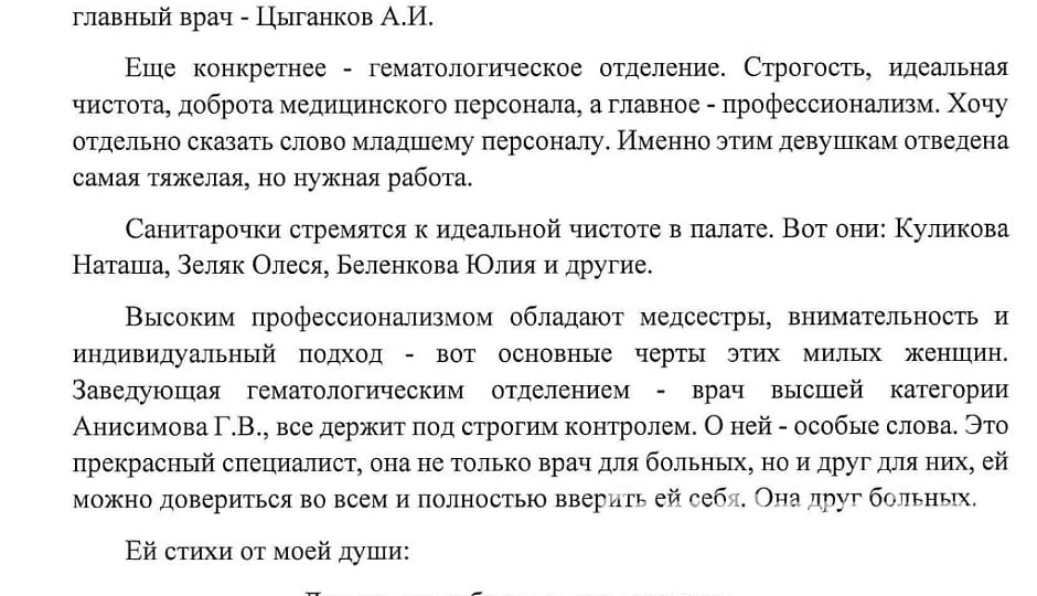 Женщина настолько благодарна врачам онкодиспансера, что попросила супруга записать ее последнее послание медикам. Жительница Армавира сочинила стихи для врачей и медицинских сестёр, которые работают в Онкологическом диспансере Армавира.