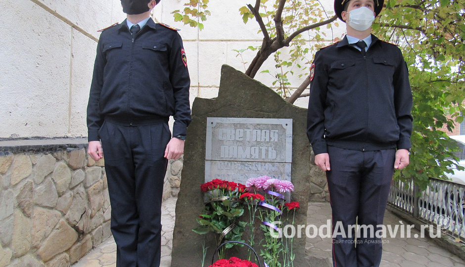 Руководство Отдела МВД России по городу Армавиру в лице Врио заместителя начальника Отдела - начальника полиции подполковника полиции Сергея Базарова и помощника начальника Отдела – начальника ОРЛС подполковника полиции Андрея Корниенко возложили цветы к мемориалу погибших сотрудников.