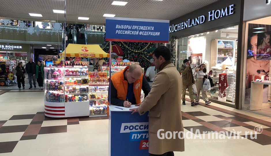 В Армавире продолжает работу пункт сбора подписей в поддержку Путина на выборах президента