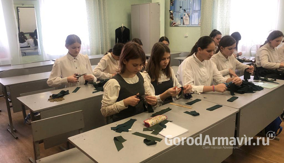 В Армавире ученики школы № 14 изготавливают маскировку для участников СВО