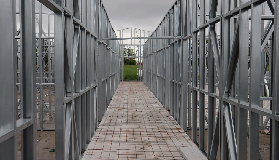 К этому моменту рабочие бригады уже залили пол и проложили все коммуникации. Здание готово на 40% .