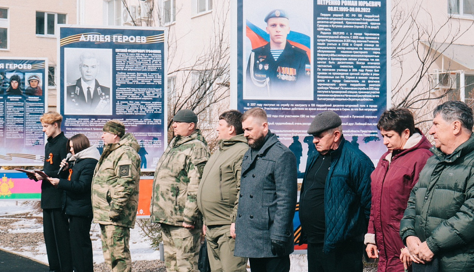 На открытии Аллеи присутствовали почетные гости. Среди них были участники СВО, военнослужащие, ветераны. На церемонию пригласили родителей погибшего студента техникума Романа Петренко. Роман посмертно награжден медалью «За боевые отличия» и «Орденом Мужества»..