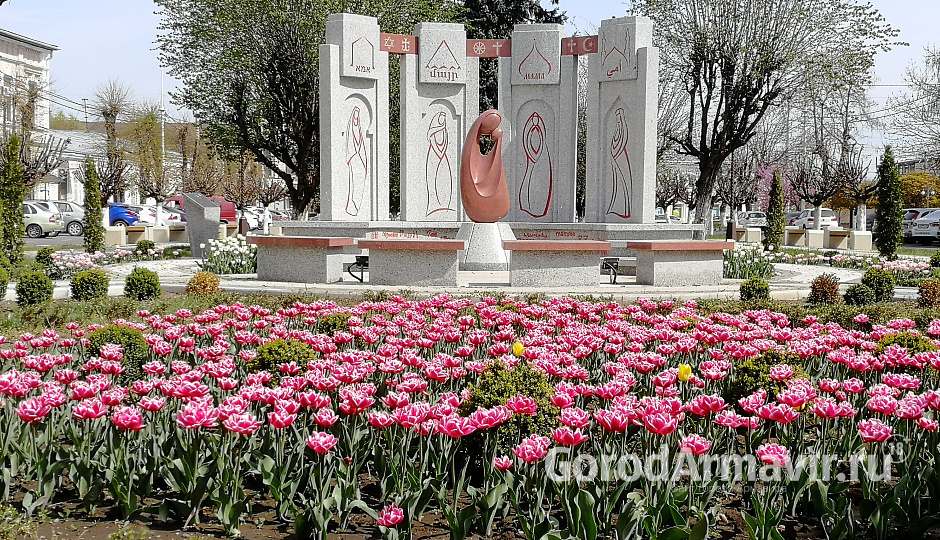 Желтые, красные, пурпурные, белоснежные – тюльпаны распустились на клумбах по всему Армавиру. Яркие массивы цветов украшают разные районы города.